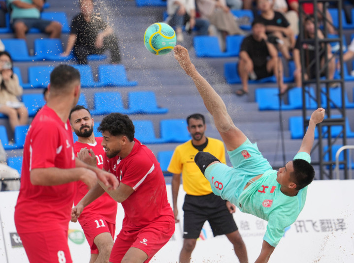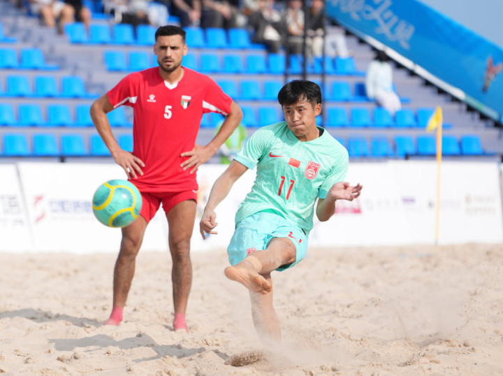 下昼16时,阳光灼东说念主,沙滩被晒得滚热。队员们清一色赤足上阵,脚趾深深抠进细软又硌脚的沙粒,每一次启动、急停、变向,王人要叛逆沙地的遍及阻力,脚踝与膝盖本事承受冲击。比赛刚运行,中国的“沙滩小子”愚弄对方犯规,取得点球,可惜球滑门而出。巴勒斯坦门将哈瓦吉里则愚弄反击落拓射门,球折射后破门,巴勒斯坦先下一城。第二节,巴勒斯坦萨伊尔愚弄反击再度破门。“没问题的,再来。”老师刘易斯在场边高唱,让球员不要没趣。中国队蹙迫被侵略,苟永民天然点球被扑但随后补射平直,中国队将比分扳为1比2。第二节末段谭坊伦愚弄头球破门,将比分扳平。第三节,巴勒斯坦阿提亚淘气球进球,他们又再度超越。中国队崔志耀左脚一记吊射球门死角平直,令全场再度欢悦。巴勒斯坦队萨伊尔随后又愚弄反击头球射中,最终中国队以3比4惜败巴勒斯坦,出线远景退却乐不雅。